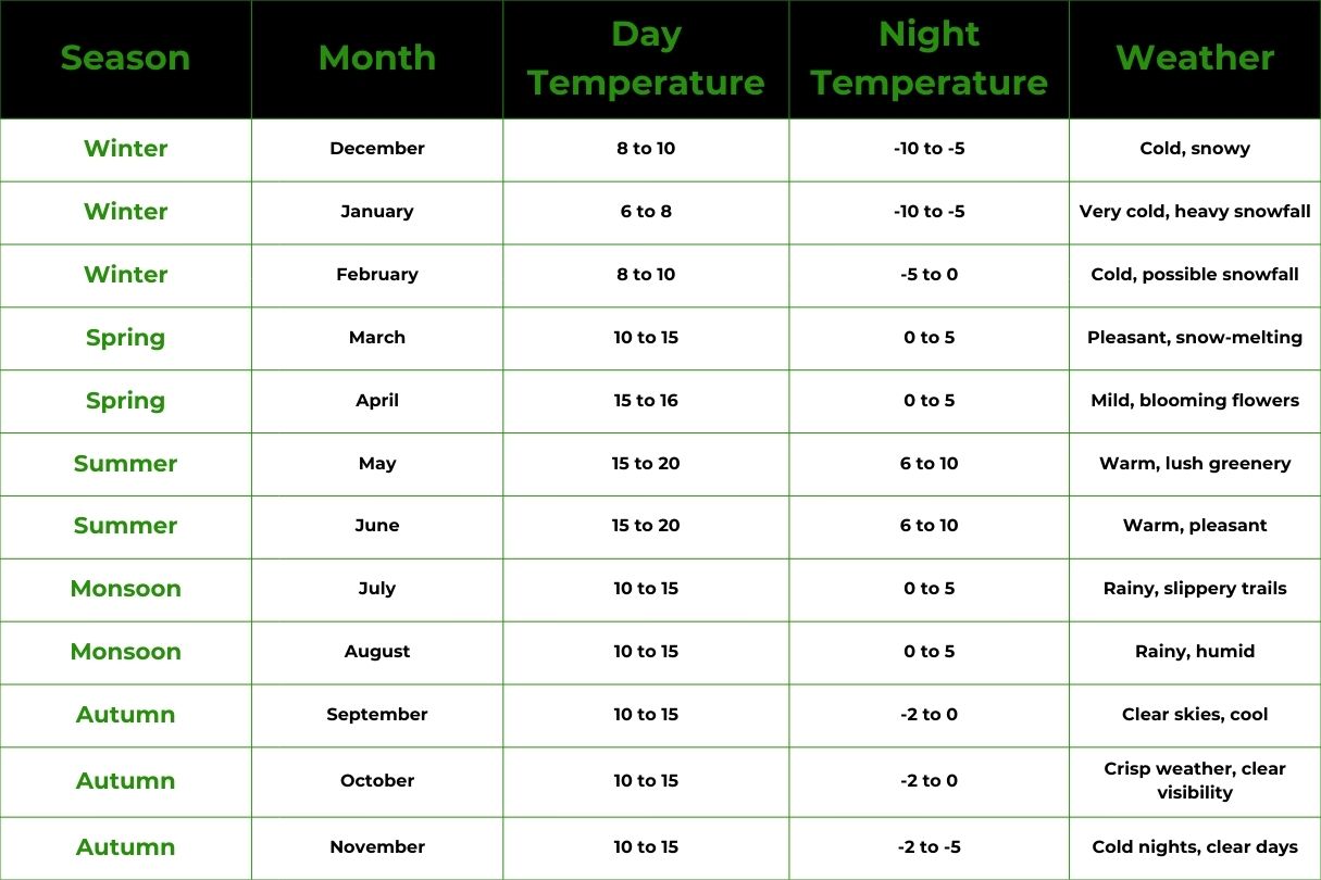 Before planning your trip, one of the most important factors to consider is the weather, as it directly impacts the trek difficulty and overall experience.