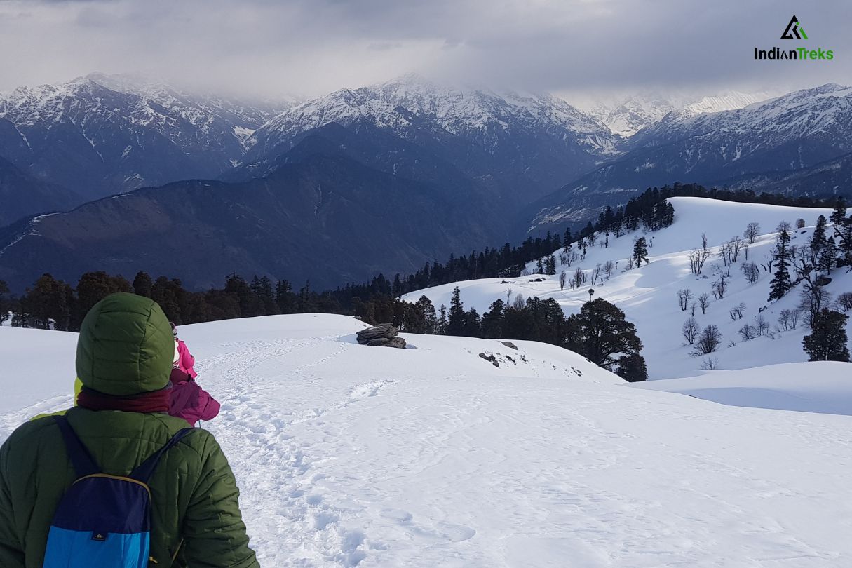 Snow-Clad Terrain (in Winter): During winter, the route remains blanketed in thick snow, making the ascent both challenging and enchanting. Trekking poles and proper footwear are especially important here for stability.